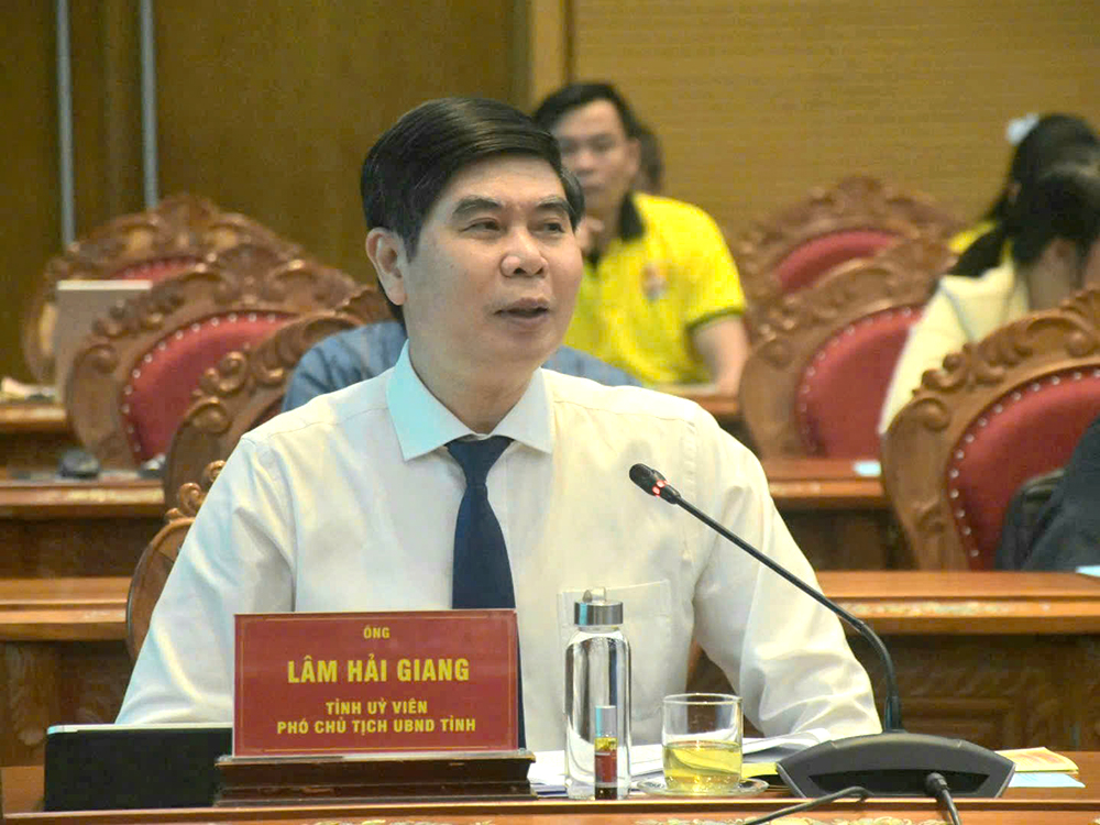 Phó Chủ tịch UBND tỉnh Bình Định Lâm Hải Giang phát biểu tại hội nghị. Ảnh: BTC