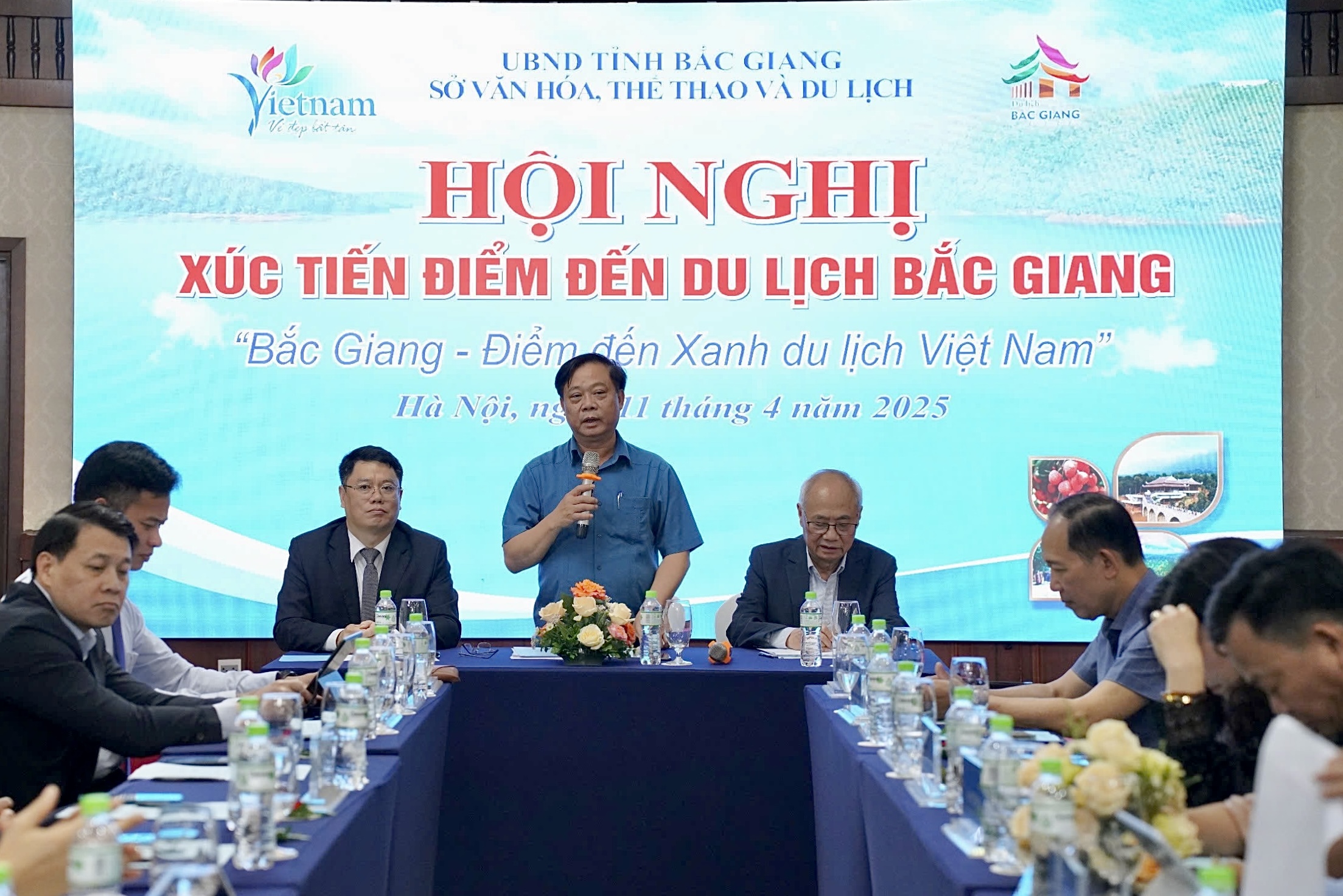 Mở đầu Hội nghị, ông Đỗ Tuấn Khoa - Phó Giám đốc Sở VHTTDL Bắc Giang đã nêu lên những tiềm năng du lịch hiện có của địa phương. Thuộc vùng đất Kinh Bắc xưa, Bắc Giang là nơi lưu giữ những giá trị truyền thống lịch sử văn hóa đặc sắc và cảnh quan thiên nhiên độc đáo. Hệ thống di sản văn hóa Bắc Giang được trải khắp 10 huyện, thị xã, thành phố với tổng số 2.237 di tích, trong đó có 759 di tích được xếp hạng các cấp gồm 06 di tích và cụm di tích Quốc gia đặc biệt; 91 di tích quốc gia; 630 di tích cấp tỉnh. Bên cạnh đó, Bắc Giang được thiên nhiên ưu ái ban tặng cho nhiều cảnh quan đẹp có giá trị về tài nguyên sinh du lịch sinh thái như khu bảo tồn, hồ, suối, thác, rừng và vùng cây ăn quả rộng lớn nhất miền Bắc và những làng nghề, sản vật nổi tiếng như vải thiều Lục Ngạn, mỳ Chũ, bánh đa Kế, rượu Làng Vân…