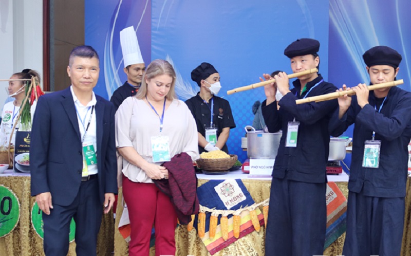 Du khách quốc tế tham quan, trải nghiệm các gian hàng quảng bá, giới thiệu sản phẩm văn hóa đặc sắc vùng miền tại Nam Định (Ảnh Báo Nam Định)