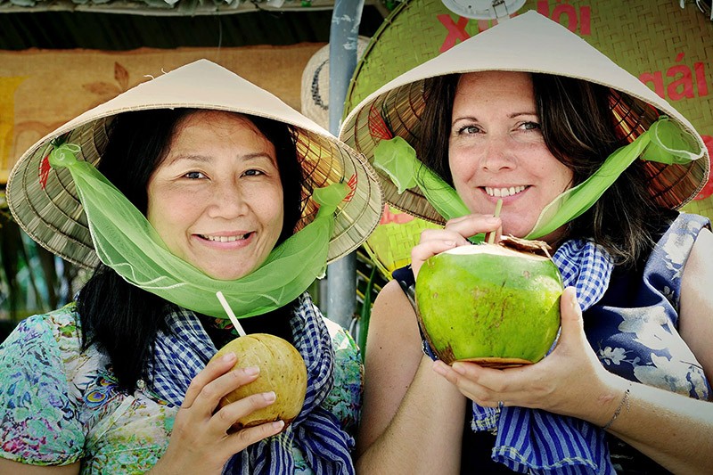 Du khách trải nghiệm du lịch xứ dừa Bến Tre. Ảnh: Cục Du lịch Quốc gia Việt Nam